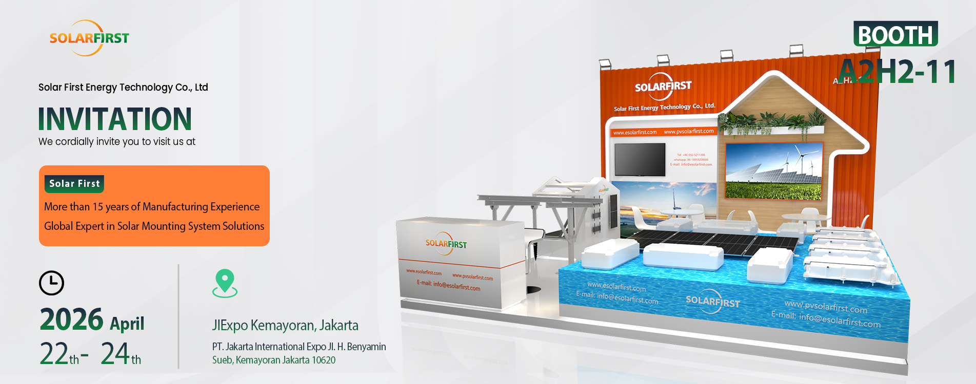 솔라퍼스트 에너지 테크놀로지(주)(Solar First Energy Technology Co., Ltd., 이하 솔라퍼스트)는 태양광 제품의 연구개발, 생산 및 판매를 전문으로 하는 기업으로, 태양광 발전 시스템, 태양광 추적 장치, 태양광 부유 시스템, BIPV 시스템, 플렉시블 마운팅 시스템, 지상 및 옥상 마운팅 시스템, 태양광 가로등, 풍력 및 태양광 하이브리드 조명 등 다양한 솔루션을 제공합니다. 솔라퍼스트(Solar First)의 판매 네트워크는 중국 전역을 비롯하여 유럽, 북미, 동아시아, 동남아시아, 중동 등 100개 이상의 국가 및 지역에 걸쳐 있습니다.