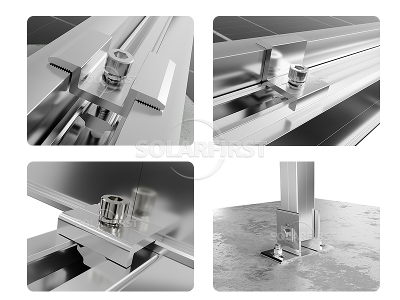 이 태양광 모듈 장착 시스템은 알루미늄 합금 6005와 304 스테인리스강 소재로 제작되어 지중 설치용으로 내식성이 매우 뛰어난 장착 구조입니다.