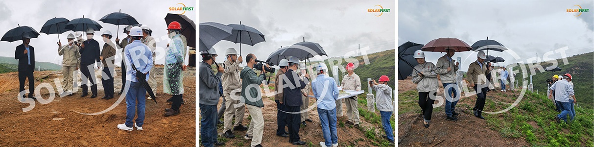 2022년 6월 14일, 중국수력제9공정국 주식회사와 중국대당공사 윈난지사 대표단이 윈난성 다리주에 위치한 60MW급 태양광 발전소 프로젝트 건설 현장을 방문했습니다. 솔라퍼스트그룹 부총경리 장샤오펑이 현장을 시찰했습니다.