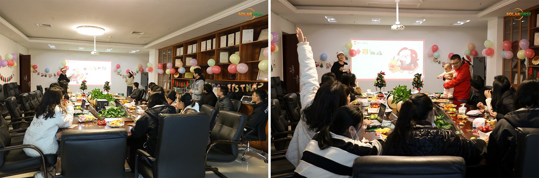 Solar First의 연례 "크리스마스 티 파티"가 오늘 예정대로 열렸습니다. "존중과 배려"라는 기업 가치를 지키며, 모든 직원들에게 축제의 따뜻함과 기쁨을 선사했습니다.