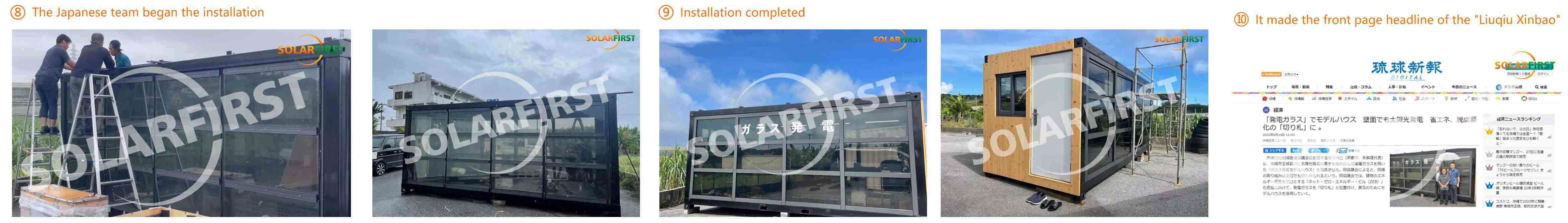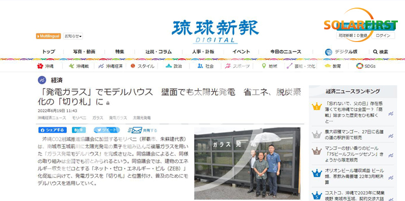 • 일본 류큐신보에 따르면, 류큐 이산화탄소 감축 추진 협회는 Solar First의 태양 유리 제품을 "제로 에너지 빌딩"을 홍보하는 "에이스"로 간주합니다.