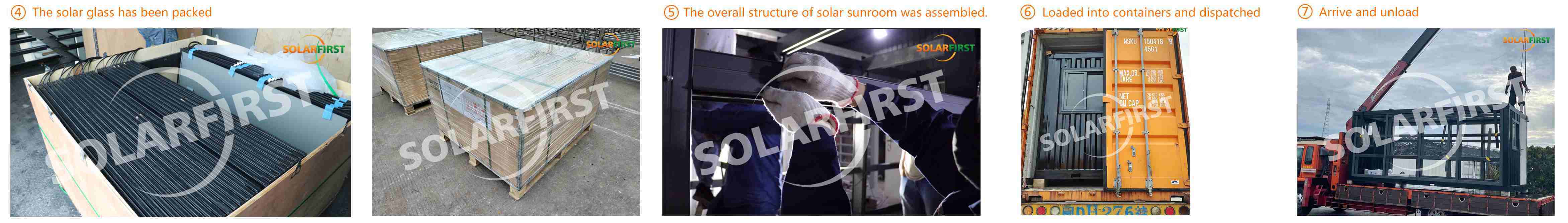 • 2022년 5월 26일: 솔라 글래스 포장이 완료되었습니다. 선룸의 주요 구조물이 조립되었습니다. • 컨테이너에 적재되어 발송되었습니다.
