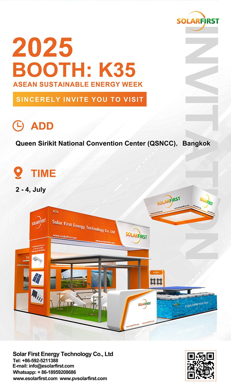 Solar First Group은 7월 2일부터 4일까지 방콕 퀸 시리킷 국립 컨벤션 센터(QSNCC)에서 열리는 ASIA Sustainable Energy Week 2025에 참가합니다. 태국에서 열리는 이 최고의 전시회는 태양광, 에너지 저장, 그리고 지속 가능한 운송 분야의 세계적 선도 기업들이 모여 최첨단 에너지 솔루션을 모색하는 자리입니다. K35 부스를 방문하시면 동남아시아 시장에 특화된 고강도 모듈형 PV 장착 시스템을 확인하실 수 있습니다.