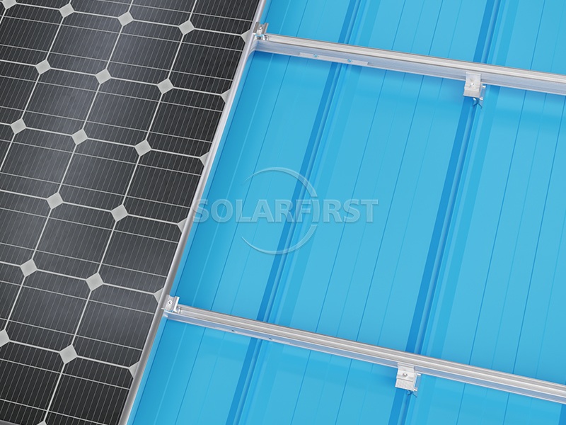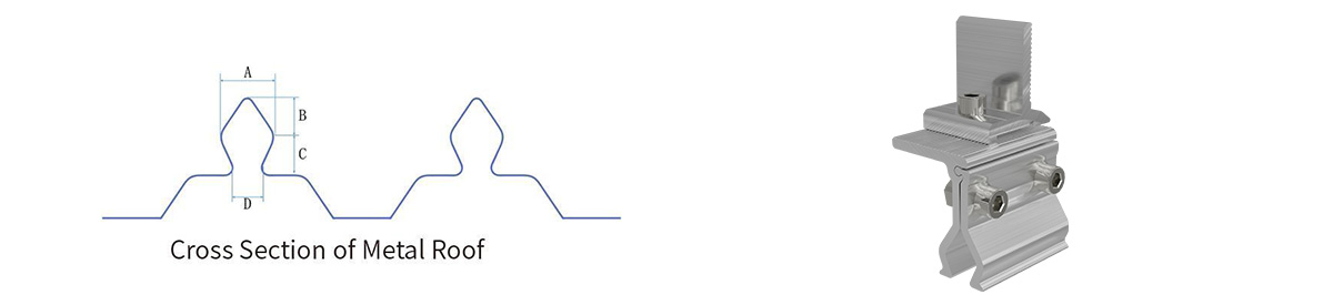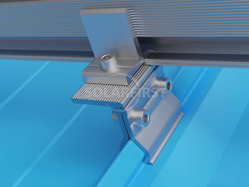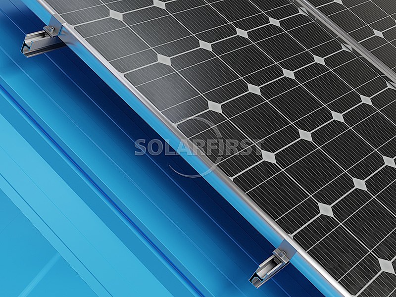 이 시스템은 경량 알루미늄 금속 지붕 장착 브래킷 구성 요소와 레일을 사용하여 지붕 하부 구조물에 가해지는 추가 하중을 최소화합니다. 특수 설계된 각형 솔라 클램프 지붕 장착대는 다양한 각형 지붕 시트 프로파일을 수용하도록 설계되어 지붕 관통 없이 안전하게 고정됩니다. 더욱 향상된 유연성을 위해, 지붕 클램프는 L자형 브래킷과 결합하여 태양광 모듈의 높이와 위치를 최적화할 수 있습니다.