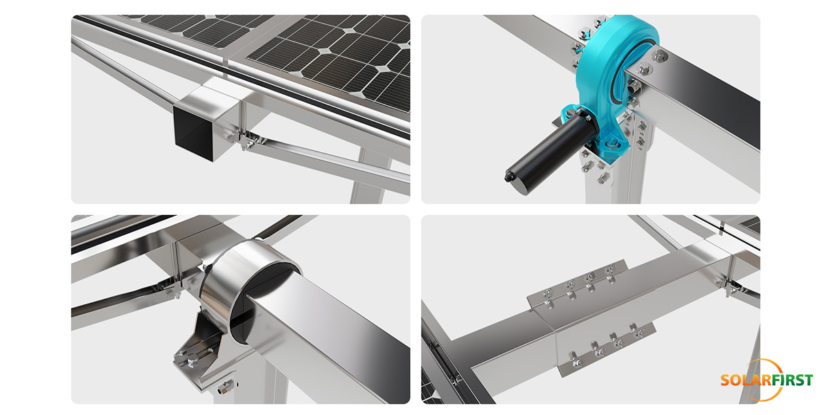 스마트 추적 시스템은 지형 및 기상 데이터를 사용하여 실시간으로 기울기 각도(최대 ±45°)를 조정하며, 독립적인 모니터링 시스템은 운영 안정성과 신속한 고장 감지를 보장합니다. 용융아연도금 및 Zn-Al-Mg 도금강(도금 두께 ≥65μm)으로 제작된 이 추적 장치는 장기적인 내식성을 제공하며 PHC, 현장타설 또는 강재 파일 기초와 함께 사용할 수 있습니다.