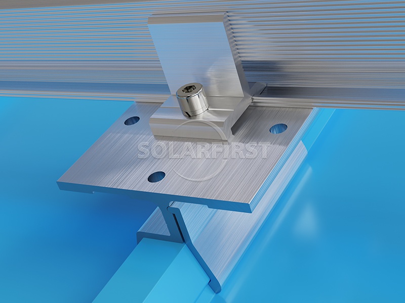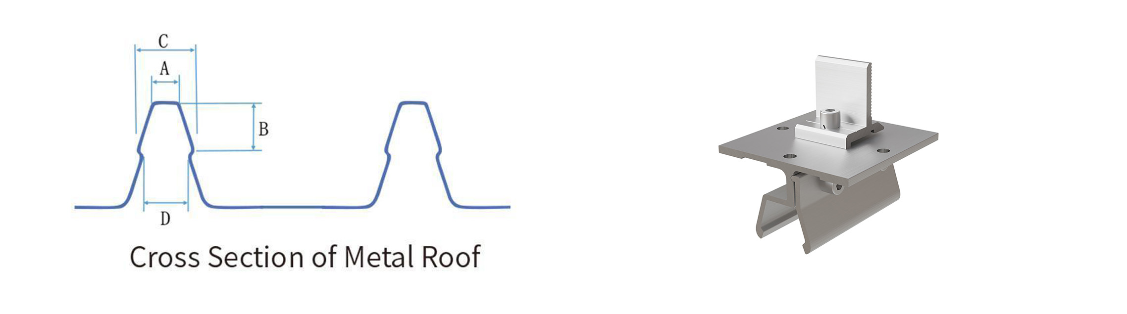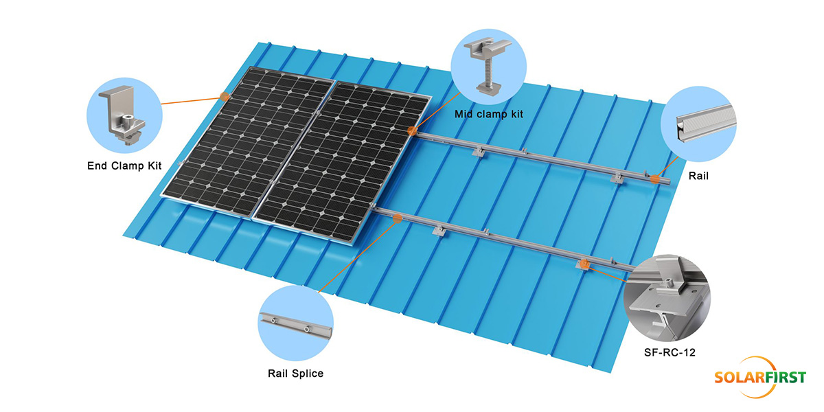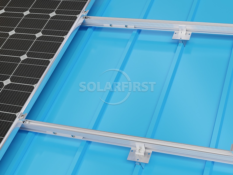 이 시스템은 양극 산화 처리된 알루미늄 클램프와 레일을 사용하여 하부 지붕 구조물에 가벼운 하중을 가합니다. 클립 록 클램프의 특정 디자인은 다양한 지붕 시트의 프로파일에 맞게 조정됩니다. 더욱 다양한 용도로 활용하기 위해 지붕 클램프를 L자형 받침대와 결합하여 태양광 모듈을 원하는 기울기 각도로 높일 수 있습니다.