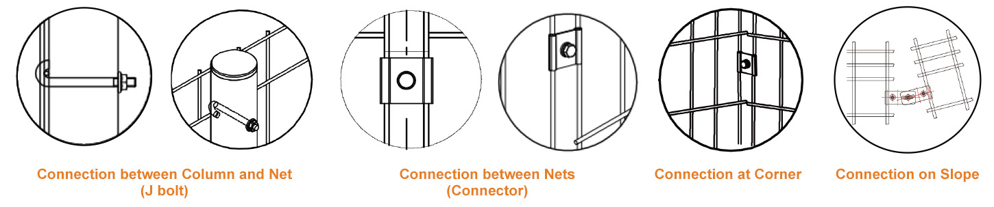 1 | 망사 | φ3.5*L2000 | 강철 | 플라스틱 디핑 또는 아연 도금 | 조각 |